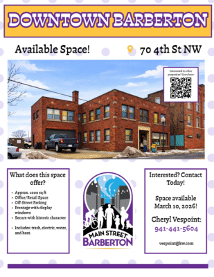 Call Melanie Black-Amato at 330-510-1335 to inquireFind a building? Be sure to get your Occupancy Permit.