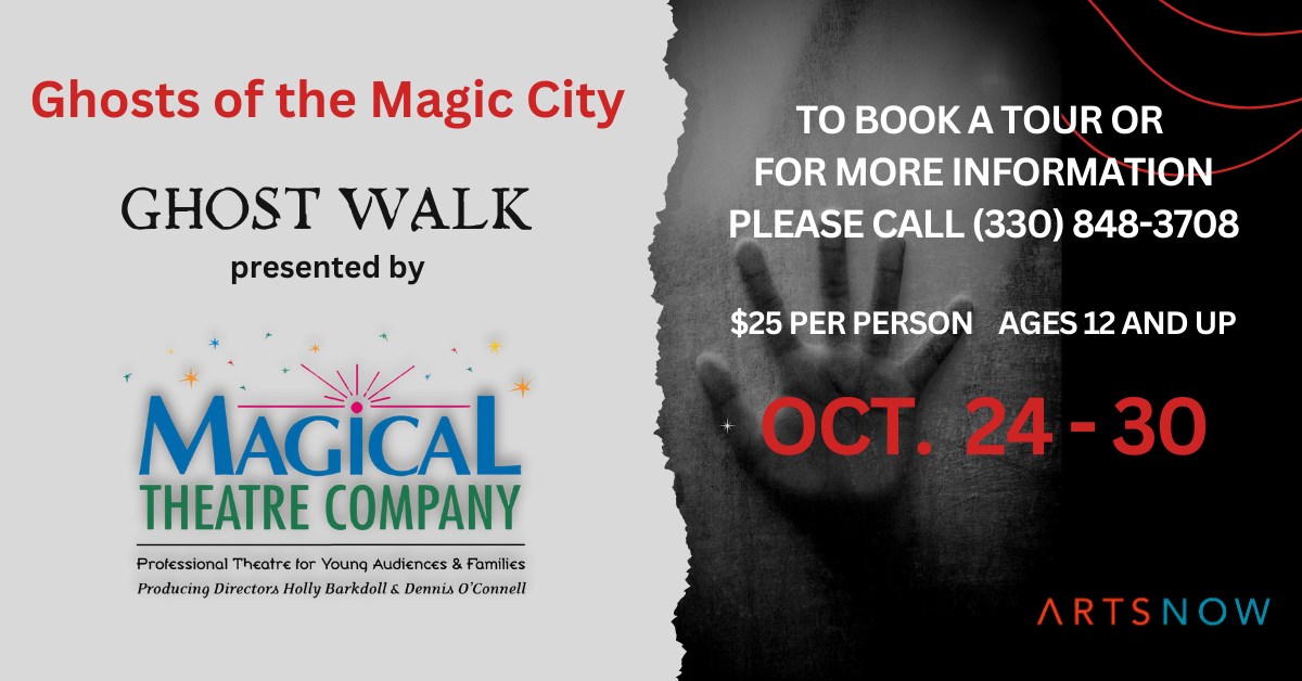 Back by popular demand! A ghost walk through downtown Barberton! Guests will experience a guided tour of haunted locations as they walk the streets of historic Alexander Square. Led by Magical Theatre Company’s professional actors, it’s a night of history, mystery and drama!