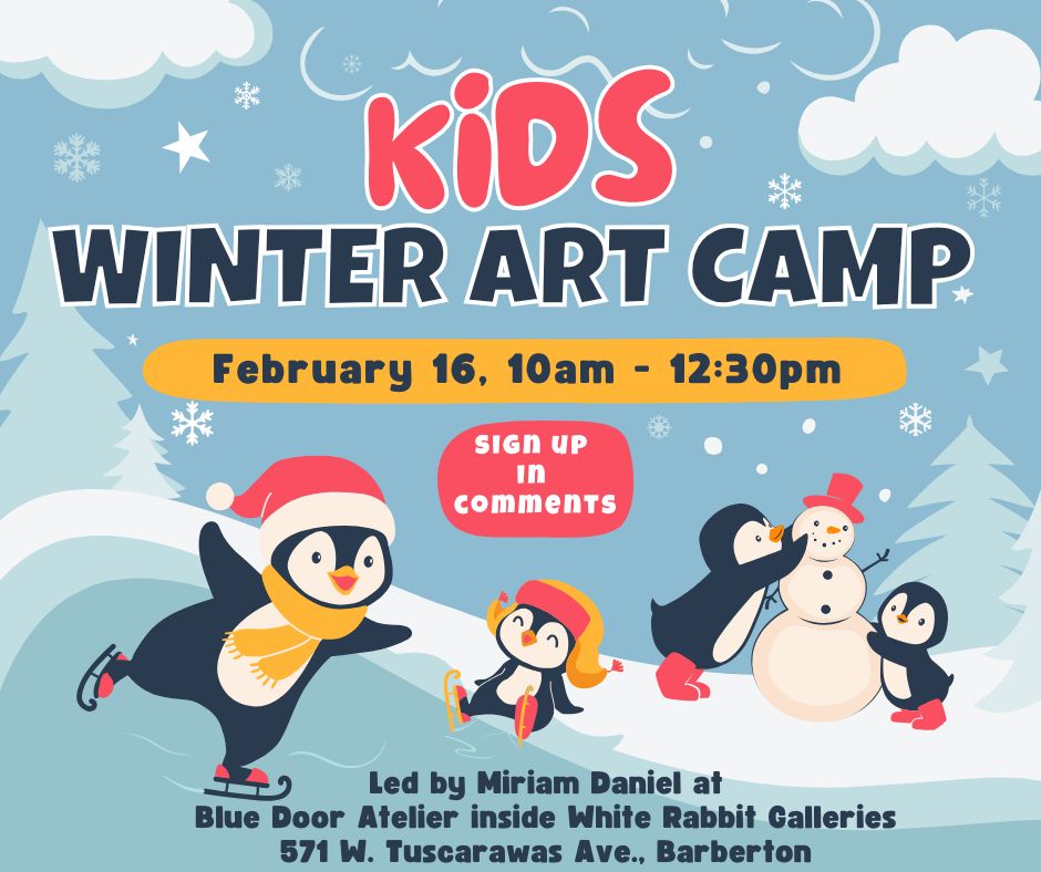 Paint With Mim is offering a Winter Camp Day this year for students in grades 1 – 4. This ocean and beach themed day will focus on a mixed media underwater scene that will be a mixture of acrylic painting, drawing sea creatures and plants, and collage work. A lighthouse craft, monoprinting a bag for beach treasures, driftwood fiber arts and more goodies are planned as time permits. All materials are provided. Campers should be dressed to get messy, and they are welcome to bring a water bottle and snack. The camp will be at the studio in White Rabbit Galleries, 571 W. Tuscarawas Ave., Barberton. Tickets available through the linked Facebook events page.