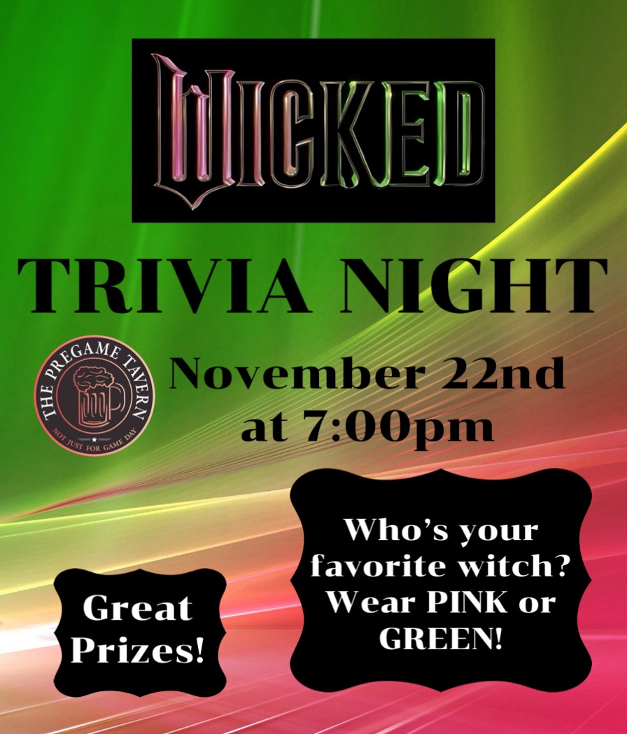It’s a Wicked Trivia night with Rose! Show support for your favorite witch by wearing pink or green! It will be a fabulous night with great prizes.